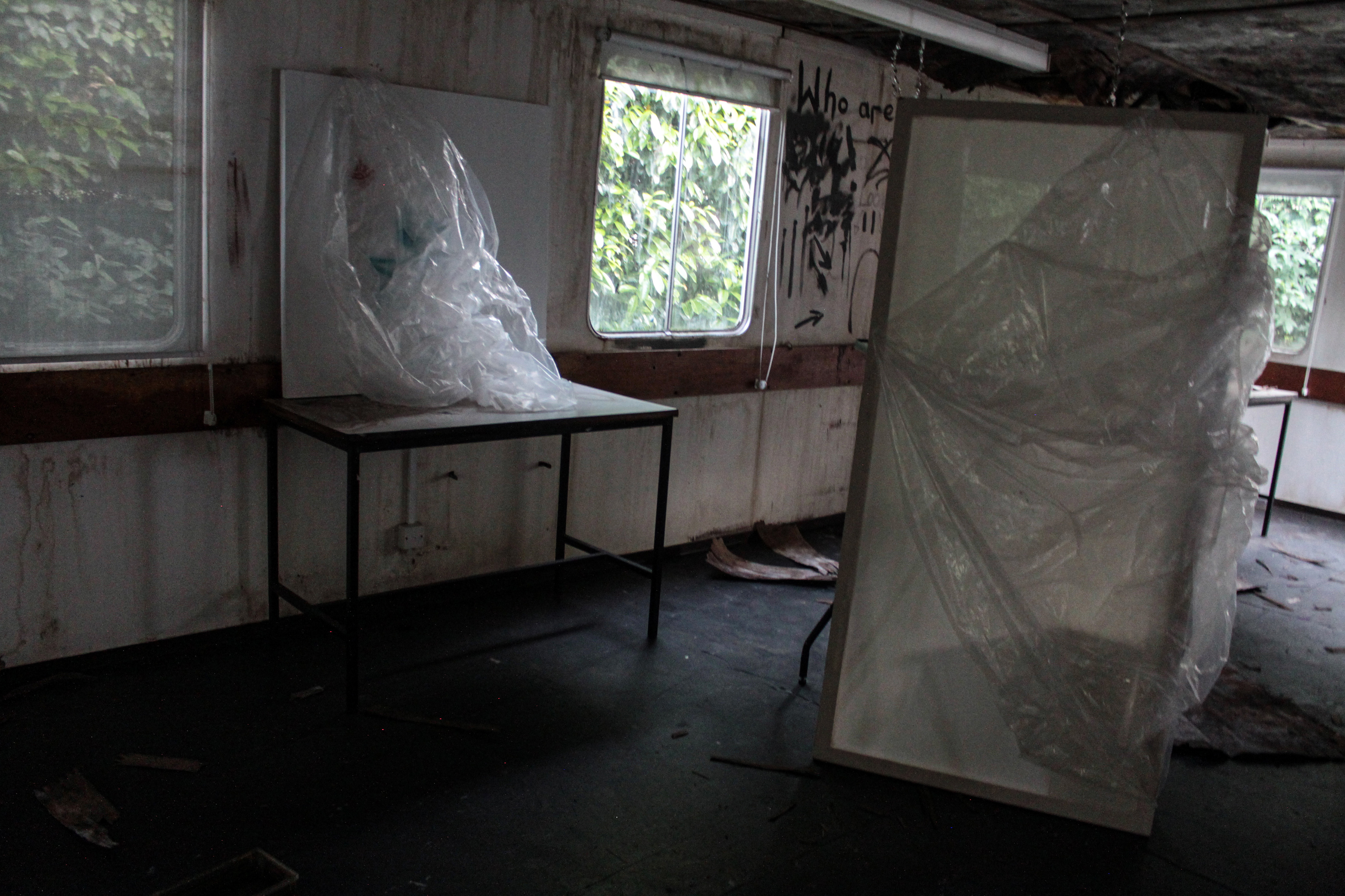 Extended gestural drawings using sculptural materials. exploring abandoned corners of an environment, often forgotten or walked past, ignored materials in broken spaces.